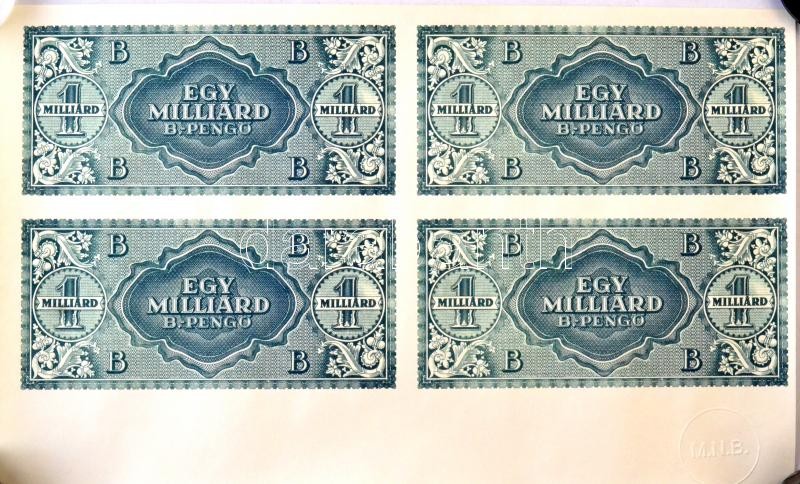 1946. 1.000.000.000BP hátoldali fázisnyomata egybefüggő 4-es ívben, "M.N.B." szárazpecséttel, jó minőségű másolat (good copy) T:I-