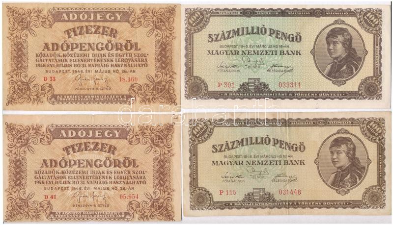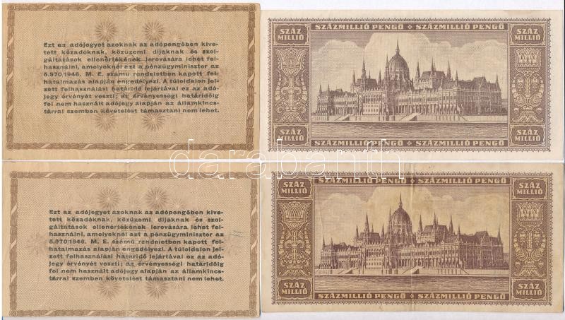 1946. 100.000.000MP (2x) egyik elcsúszott előlapi nyomattal + 10.000AP...