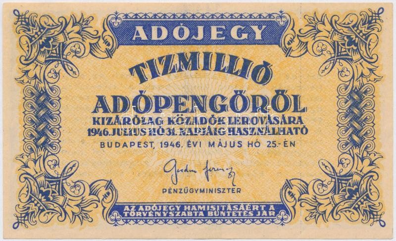 1946. 10.000.000AP sorozat- és sorszám nélküli, fordított címerrel, &q...