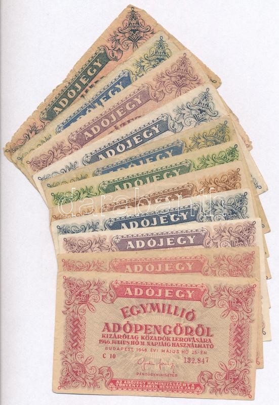 1946. 11db-os vegyes magyar adópengő bankjegy tétel, közte fordított c...