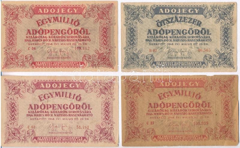 1946. 500.000AP + 100.000AP (3x) mind vízjeles papíron és "amelyekNEK", egyik 100.000AP fordított címerrel T:III,III-