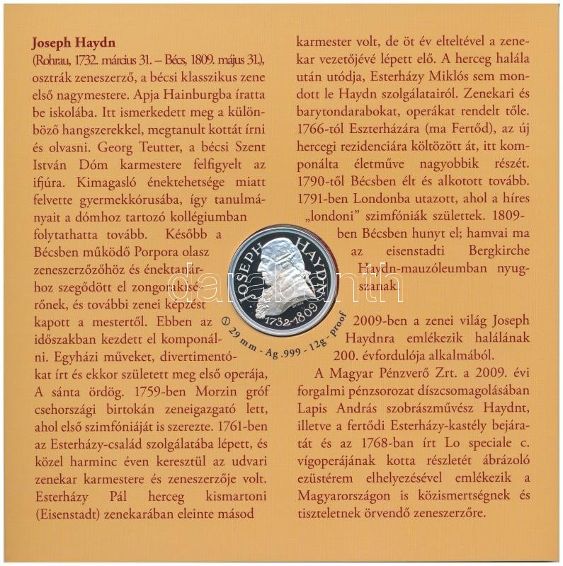 2009. 5Ft-200Ft "Haydn" (7xklf) forgalmi érme sor, benne "Joseph Haydn" Ag emlékérem (12g/0.999/29mm) (2x) T:PP Adamo FO43.4