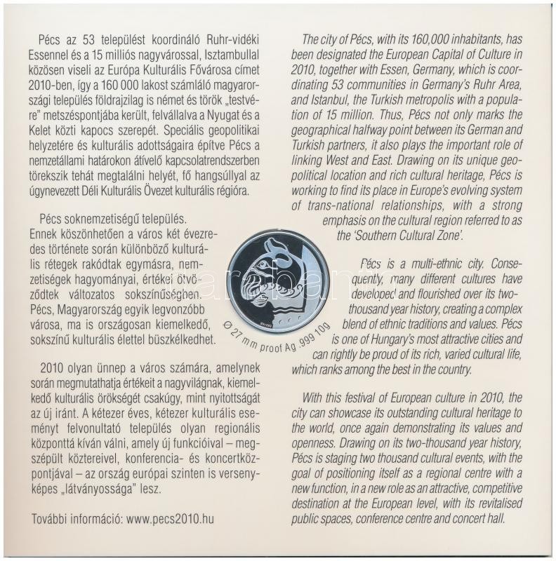 Description: 2010. 5Ft-200Ft (6xklf) forgalmi sor dísztokban, valamint 2010. "Pécs 2010 - Európa Kulturális Fővárosa" Ag emlékérem (10g/0.999/27mm), "Magyarország pénzérméi" sorozat T:BU Adamo FO44.3