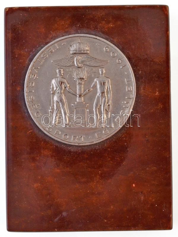 1909. "Testvériség Sport Egyesület" fém emlékérem fa talpon ...