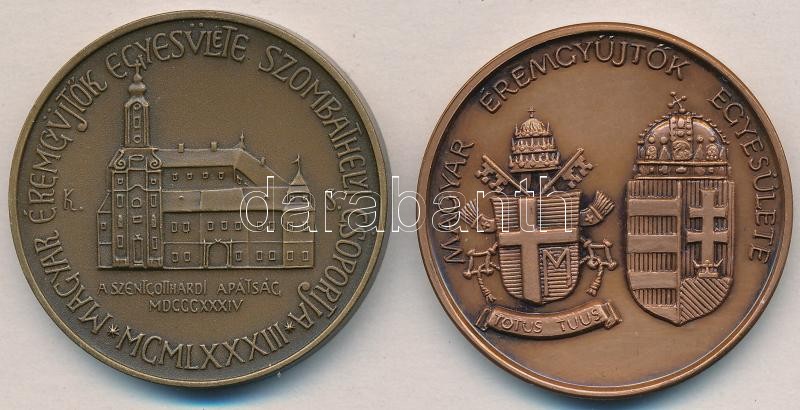 Description: 1983. "MÉE Szombathelyi Csoportja / Szentgotthárd alapításának 800 éves évfordulója" Br emlékérem (42mm) + Horváth László 1991. "II. János Pál pápa látogatása hazánkban / Magyar Éremgyűjtők Egyesülete" Br emlékérem (42mm) T:1-