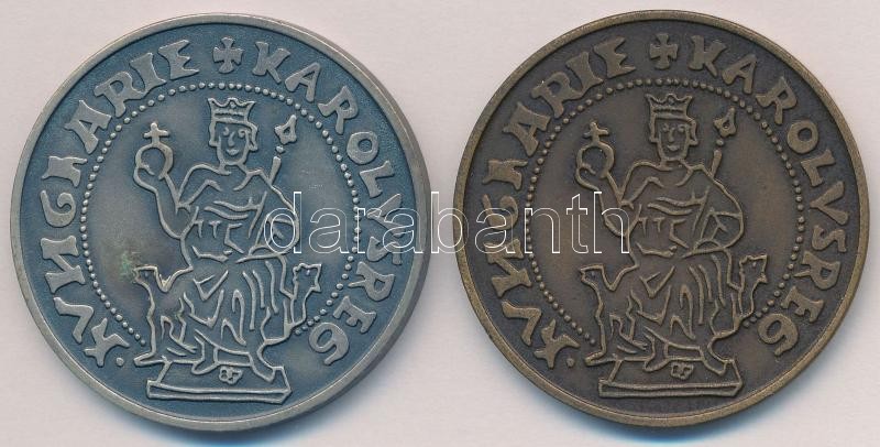 1984. "Szécsény mezővárosi rangra emelése emlékére 1334-1984 / Károly Róbert" ezüstözött Br és Br emlékérem (2xklf) (42,5mm) T:1-