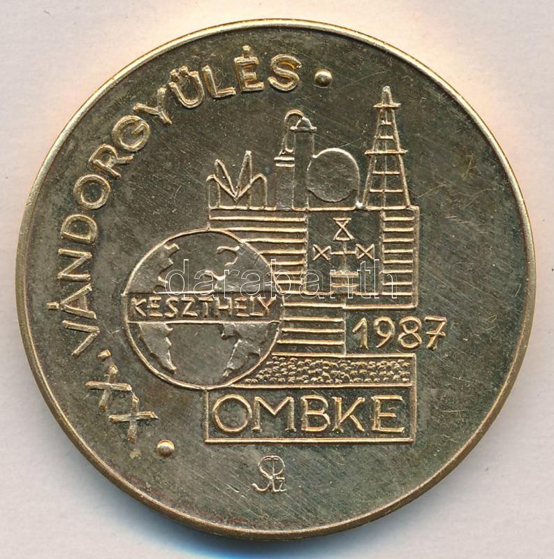 1987. "50 éves a magyar kőolaj és földgáz termelés / OMBKE XX. Vándorgyűlés Keszthely" aranyozott fém emlékplakett (42mm) T:2