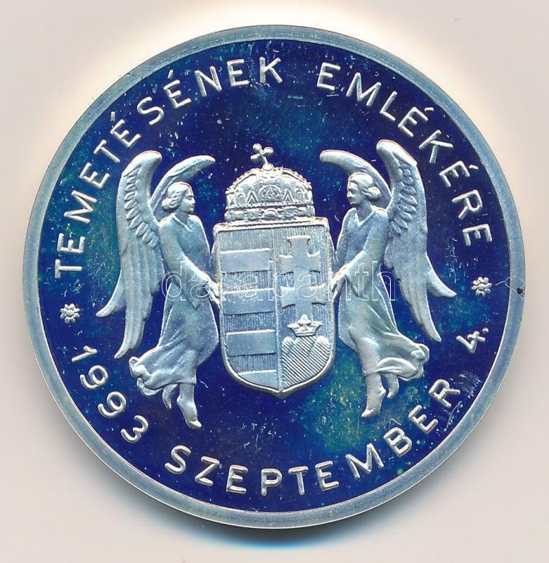 Description: 1993. "Vitéz Nagybányai Horthy Miklós Magyarország kormányzója / Temetésének emlékére 1993. szeptember 4." jelzett Ag emlékérem, tanúsítvánnyal, tokban (32,60g/0.925/40mm) T:1,1- (egyik oldal eredetileg PP) oxidációs fo.