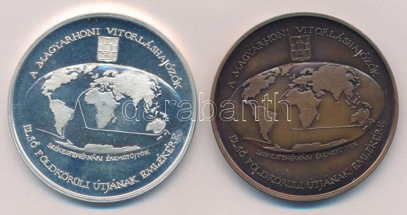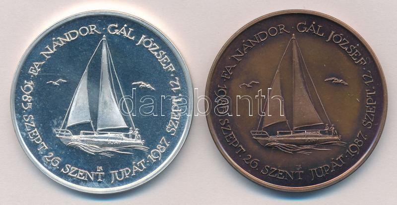 Description: Lapis András (1942-) 1987. "MÉE Székesfehérvár - A magyarhoni vitorláshajózók első földkörüli útjának emlékére / Szent Jupát - Fa Nándor, Gál József" Ag és Br emlékérem pár (35,70g/0.835/42,5mm) T:1 (eredetileg PP)