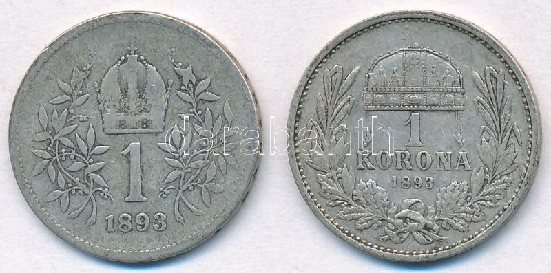 Vegyes: 1893KB 1K Ag + Ausztria 1893. 1K Ag "Ferenc József" ...