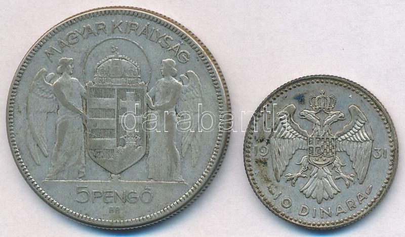 https://www.darabanth.com/en/336-Online-auction/336.0/Numismatics/Mixed-banknote-and-coin-lots~1500019/Vegyes-1930-5P-Ag-Horthy-jobbra-plus-Jugoszlavia-1931-10D-Ag-I-Sandor-T2-2-kis-patina~II1876935