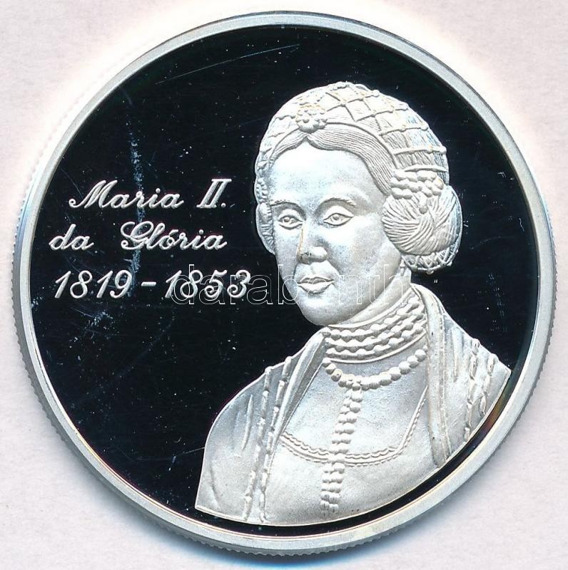 Description: 1997. "Maria II da Glória - Portugál Köztársaság - ECU" jelzett Ag emlékérem, tanúsítvánnyal (20g/0.999/40mm) T:PP fo.
