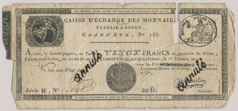 Franciaország / Rouen 1797-1803. 20Fr "annulé (érvénytelen)"...