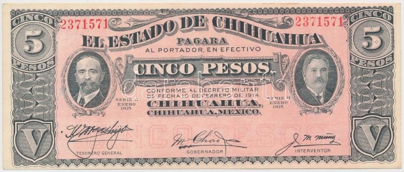 Description: Mexikó / Forradalom / Chihuahua 1915. 5P hátoldalán fekete felülbélyegzés T:I-