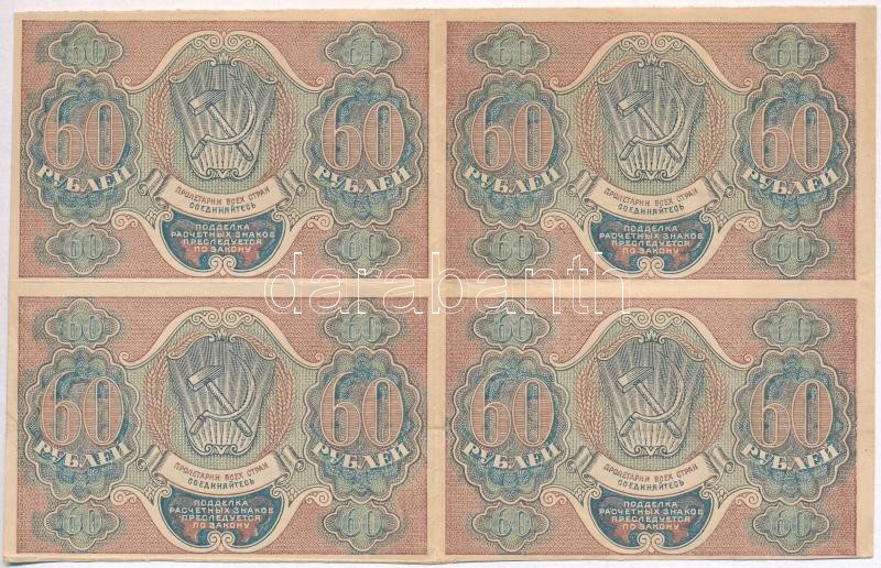 Szocialista Szövetségi Szovjet Köztársaság 1919. 60R (4x) ívben T:III ... https://www.darabanth.com/en/336-Online-auction/336.0/Numismatics/Worldwide-banknotes~1500012/Szocialista-Szovetsegi-Szovjet-Koztarsasag-1919-60R-4x-ivben-TIII-vagott-Russian-Sociali~II1863788