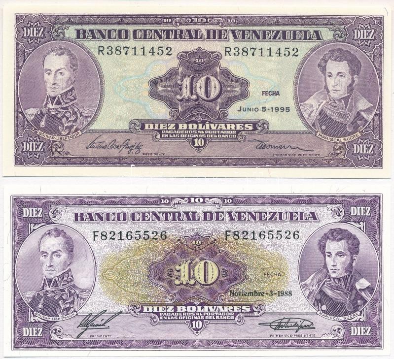 Venezuela 1988. 10 Bolivares + 1995. 10 Bolivares C:UNC