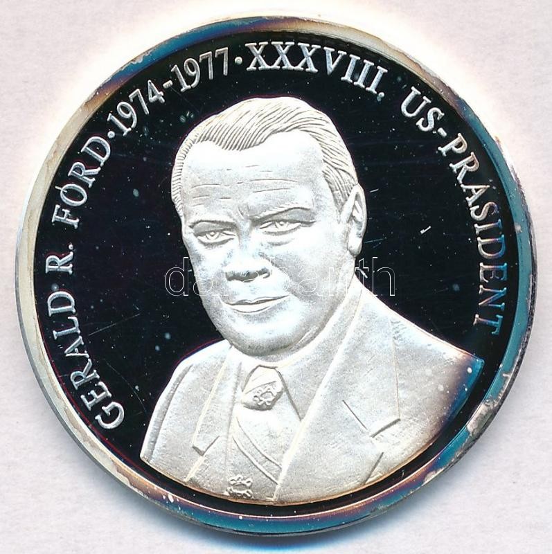 Description: Németország 1992. "Gerald Ford - Az Amerika Egyesült Államok elnökei" jelzett Ag emlékérem, tanúsítvánnyal (15g/0.999/35mm) T:PP patina