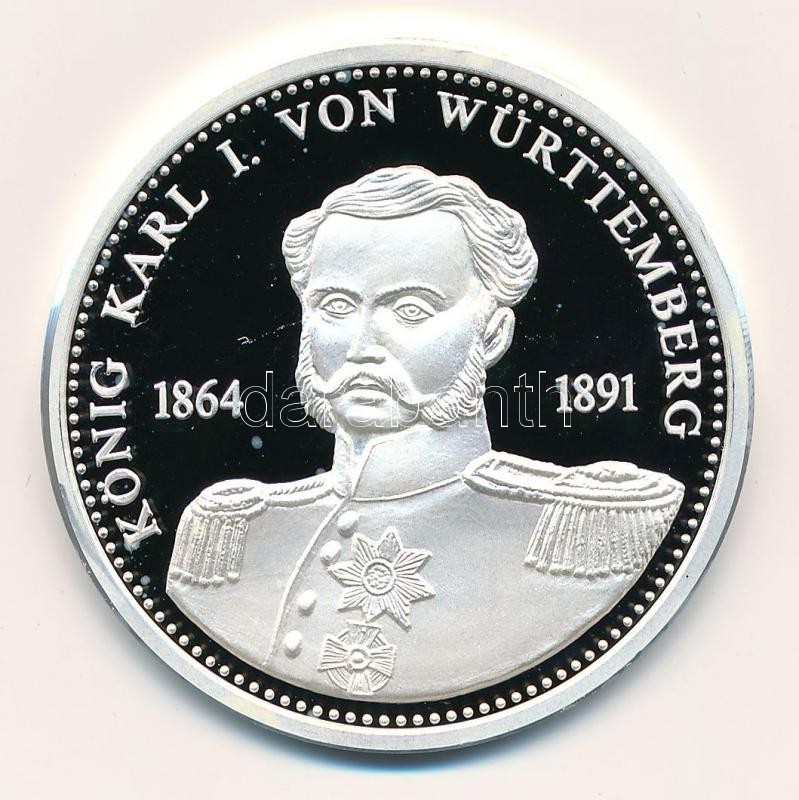 Németország 1992. "I. Württembergi Károly - Német királyok" ... https://www.darabanth.com/en/336-Online-auction/336.0/Numismatics/Worldwide-commemorative-medallions-and-plaques~1500014/Nemetorszag-1992-I-Wurttembergi-Karoly-Nemet-kiralyok-jelzett-Ag-emlekerem-tanusitv~II1843774