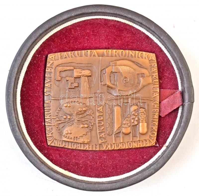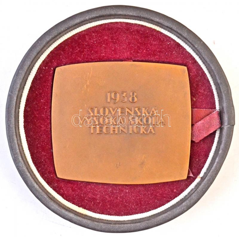 Description: Szlovákia 1938. "Slovenska Vysoka Skloa Technicka (Szlovák Műszaki Egyetem)" Br emlékplakett eredeti tokban. Szign.: L. Skopik (80,5x70,5mm) T:2