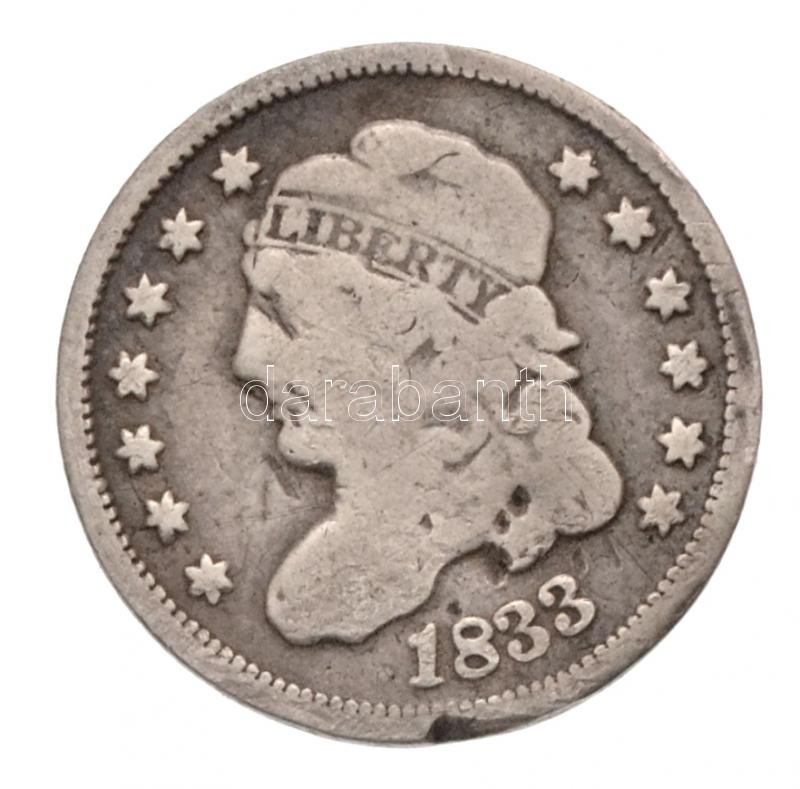 https://www.darabanth.com/en/336-Online-auction/336.0/Numismatics/Worldwide-silver-and-metal-coins~1500013/Amerikai-Egyesult-Allamok-1833-12d-Ag-1-12g-T3-ph-USA-1833-12-Dime-Ag-1-12g-CF-edge-er~II1884963