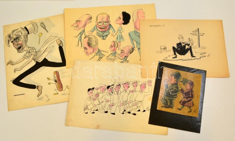 Altorjay jelzéssel: 5 db karikatúra, vegyes technika, papír, jelzettek, különböző méretben