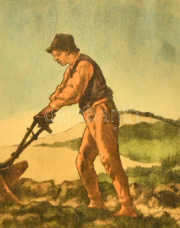 Barta Ernő (1878-1956): Szántó fiú. Színes litográfia, papír, jelzett,...