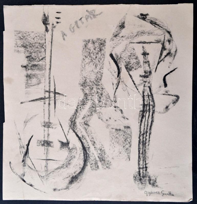 Gyenes jelzéssel: A gitár. Szén, papír, 29×28 cm