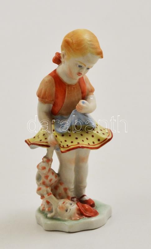 Herendi kislány, kézzel festett, jelzett, apró kopásokkal, m: 13,5 cm