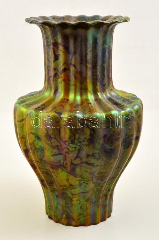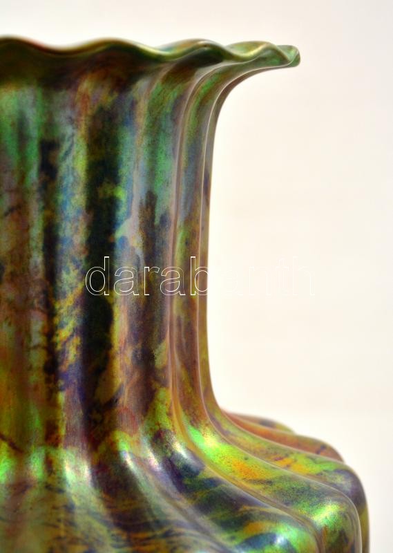 Zsolnay eozin mázas díszváza, formába préselt porcelánfajansz, jelzett...