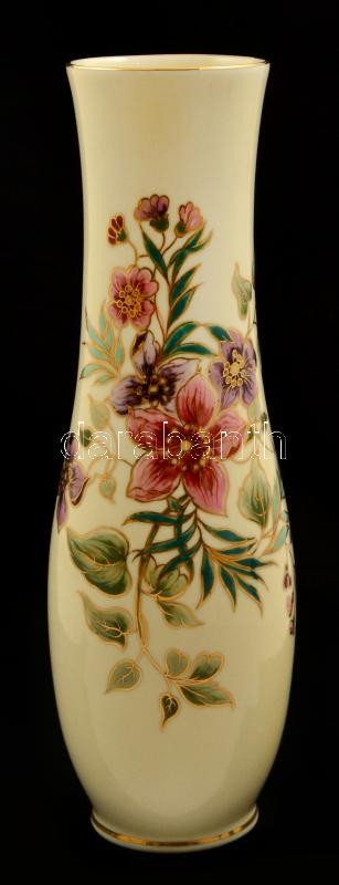 Zsolnay virágmintás porcelán váza, kézzel festett, jelzett, hibátlan, m: 25 cm