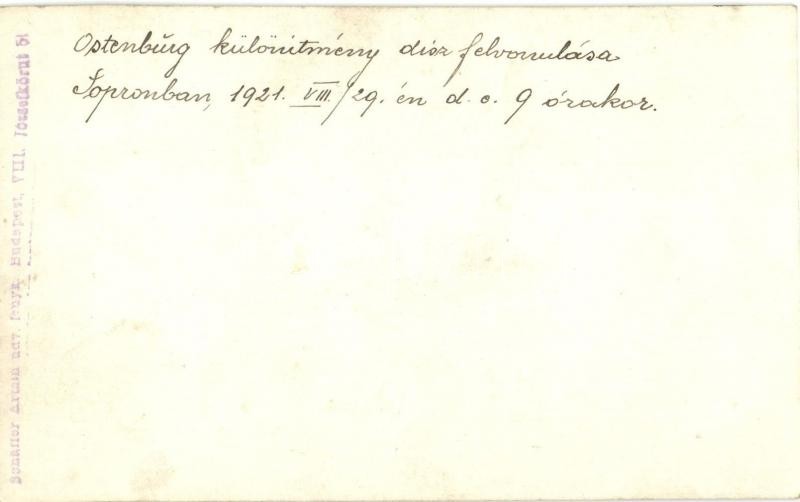 1921 Sopron, Ostenburg különítmény (csendőrzászlóalj) díszfelvonulása ... https://www.darabanth.com/en/336-Online-auction/336.0/Postcards/Hungary~1000005/1921-Sopron-Ostenburg-kulonitmeny-csendorzaszloalj-diszfelvonulasa-augusztus-29-en-del~II1887995