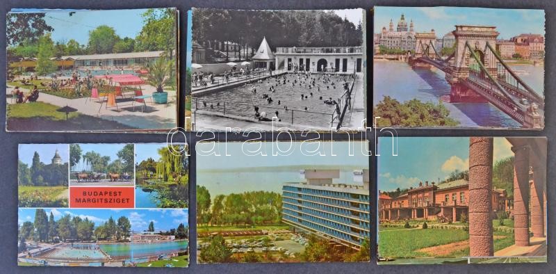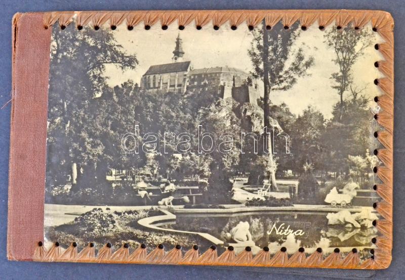 Description: Kis alakú képeslapalbum, 14 beragasztásra alkalmas lappal + 29 db MODERN magyar képeslap (főleg fürdők) / Small sized postcard album with 14 sheets suitable for sticking in postcards + 29 modern Hungarian town-view postcards (mostly spas)