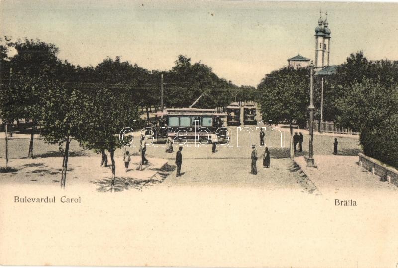 Braila, Bulevardul Carol / street view, tram. J. Vasluianu (apró lyuk ...