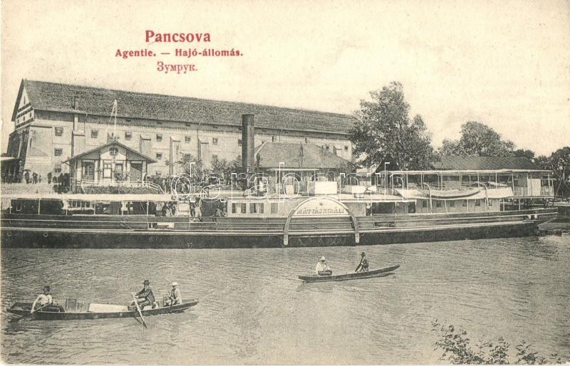 1906 Pancsova, Pancevo; Agentie / Hajóállomás, "Mátyás király" oldalke...