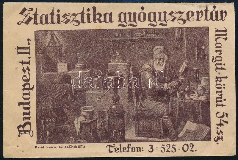 cca 1930 Bp. II. Margit körút, Statisztika gyógyszertár receptborítékja (restaurált)