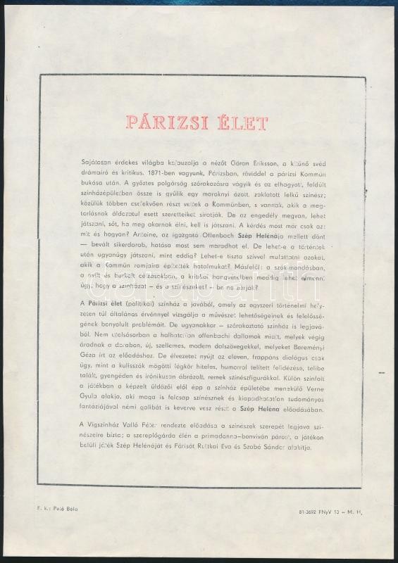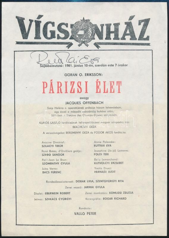 1981 Ruttkai Éva (1927-1986) színésznő aláírása a Vígszínház egy előad...