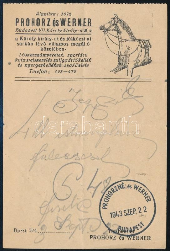 1943 Bp., Prohorz és Werner lószerszám, sportáru stb. szaküzletének sz...