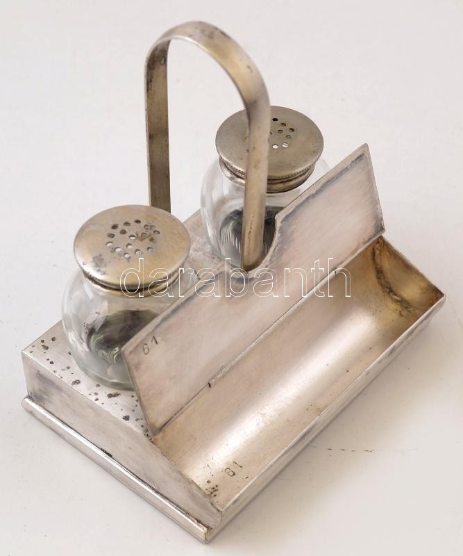 Alpakka só-borsszóró csiszolt üveg testtel, kis kopásokkal, m: 13 cm