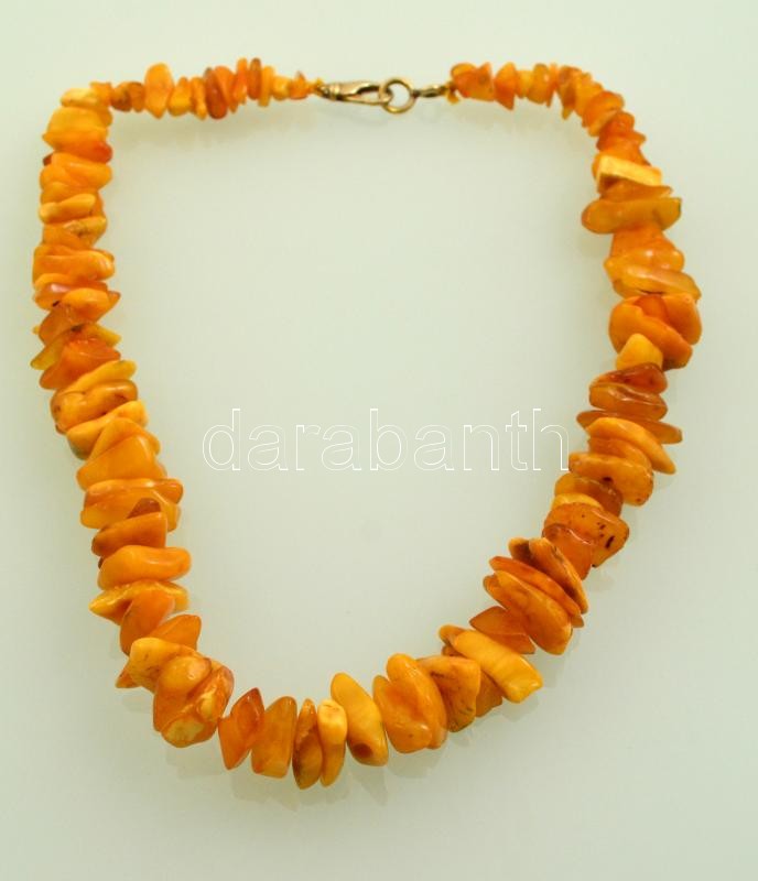 Borostyán nyaklánc, aranyozott ezüst kapoccsal, h: 50 cm