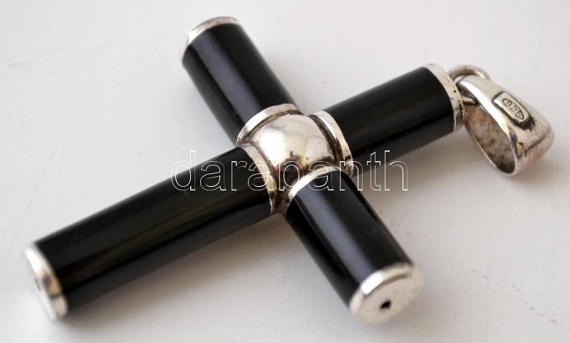 Ezüst (Ag.) és ónix kereszt medál, jelzett, 6×4 cm