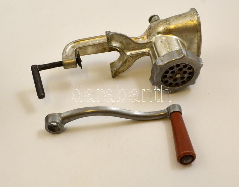 Fém húsdaráló, jó állapotban, h: 26 cm