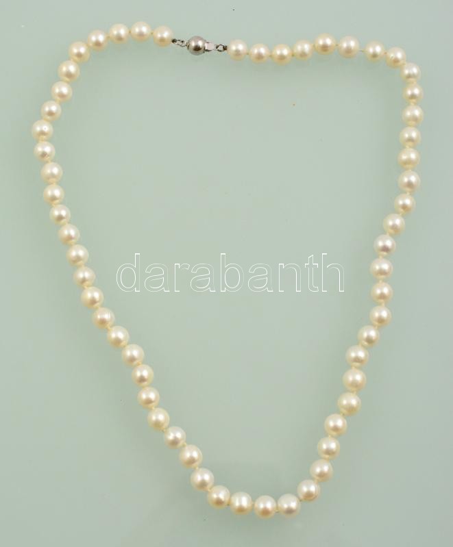 Tenyésztett gyöngysor ezüst (Ag.) csattal, h:46 cm