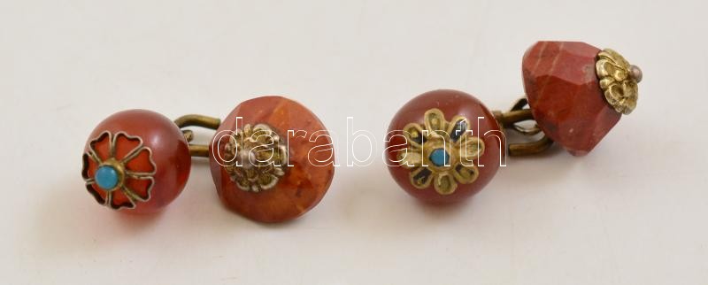 cca 1920 Féldrágakő és borostyán női mandzsetta gomb.