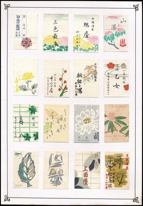 cca 1950 127 db japán gyufacímke, 8 db kartonlapra ragasztva