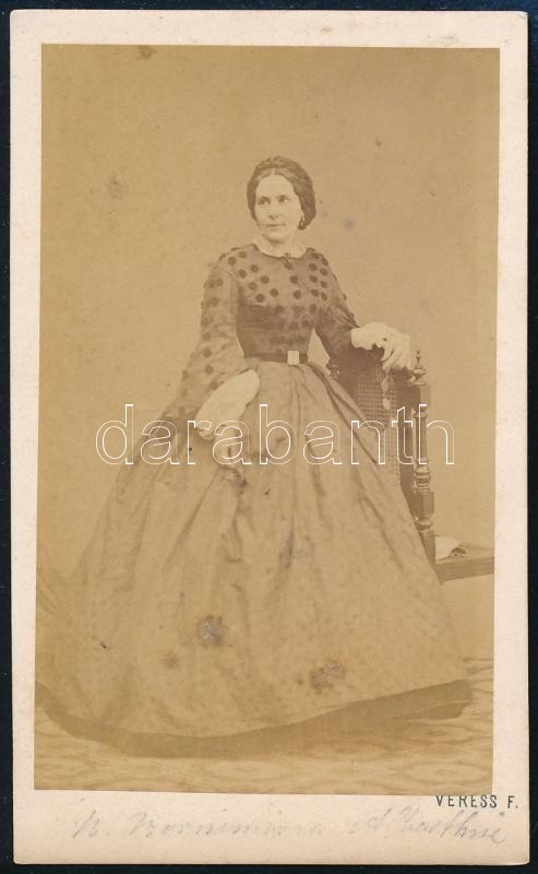 1864 báró Bornemisza Albertné (1837-1902), szül. gróf Kornis Gabriella, keményhátú, feliratozott fotó Veress Ferenc műterméből, 10,5×6,5 cm