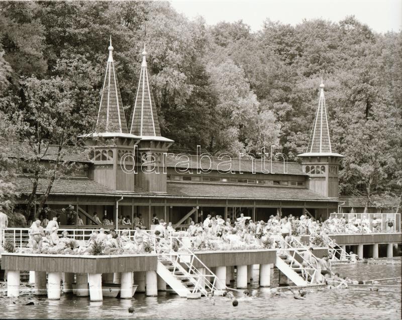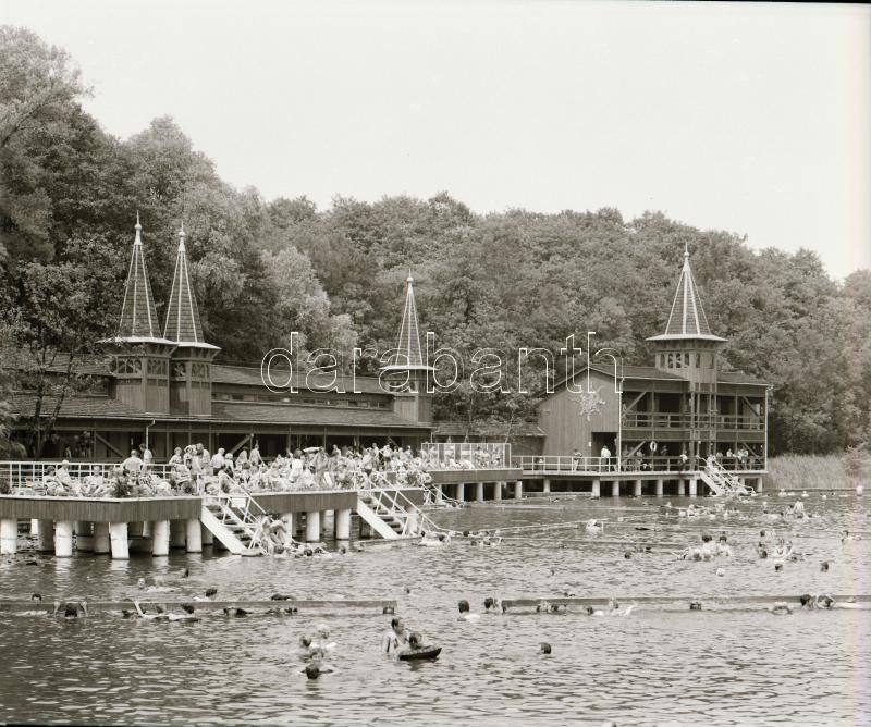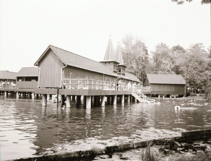 Description: 1986. március 3. A hévízi tófürdő épületeinek maradványai a tűzvész után, 4 db feliratozott sajtófotó, 18x24 cm + 1978 Hévízi gyógyfürdő, 18 db szabadon felhasználható negatív, 6x7 cm