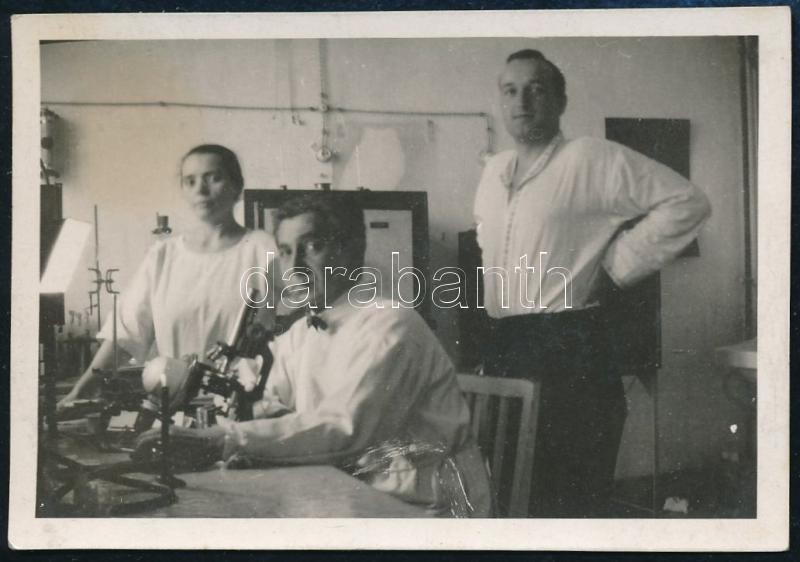 cca 1930 Sopron, Dr. Szilvási (Szilvássy) Gyula (1881-1937) főorvos és tanár laboratóriumában, fotó, 6×8,5 cm