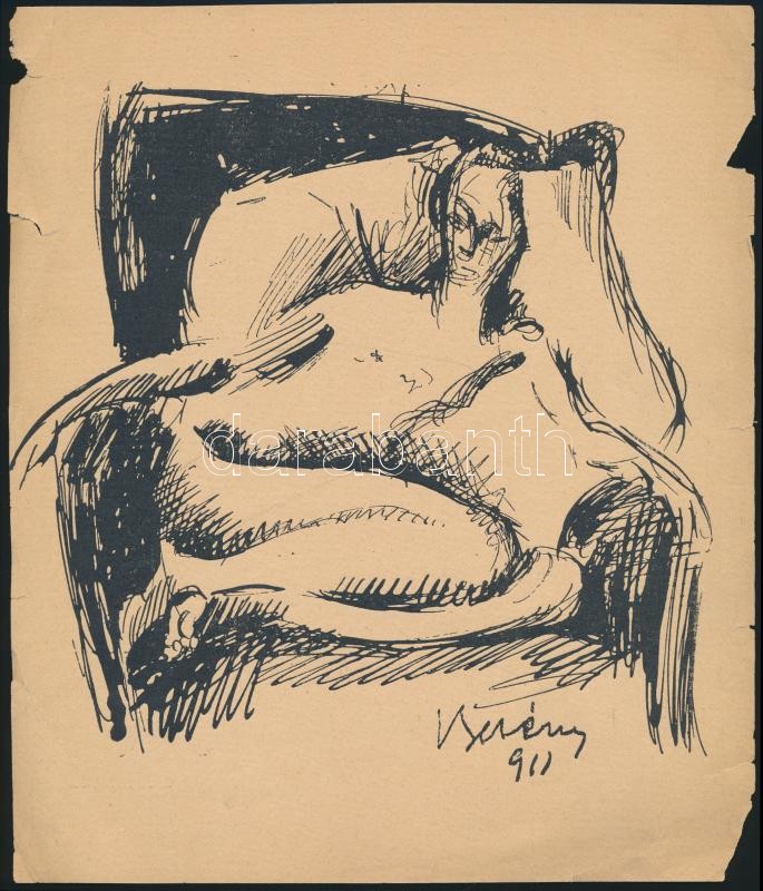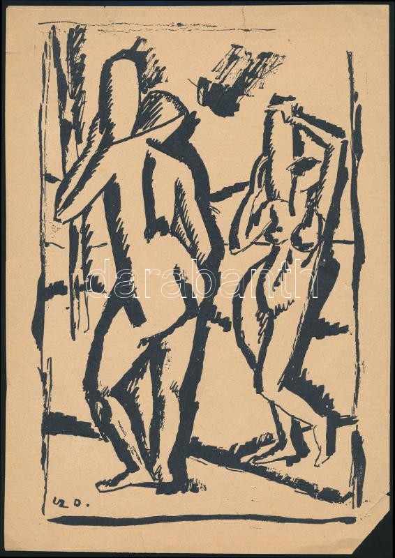1911. "Nyolcak" kiállÃtási katalógusából (A nyolcak második kiállÃtásának katalógusa) 2 db grafika reprodukciója: Czigány DezsÅ‘: Két nÅ‘i akt. Berény Róbert: Fotelben ülÅ‘ akt. Kis szakadással, 22,5×15 cm, 19×19 cm