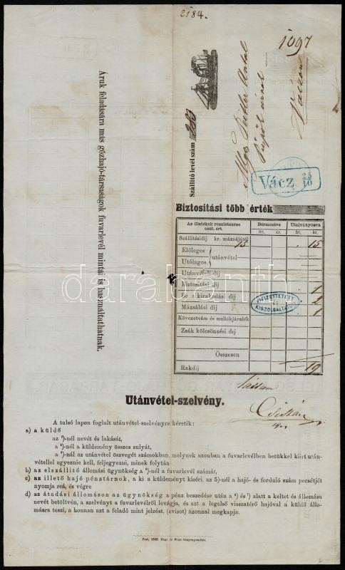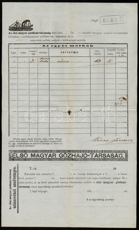 1868 Első Magyar gőzhajó társulat fuvarlevél