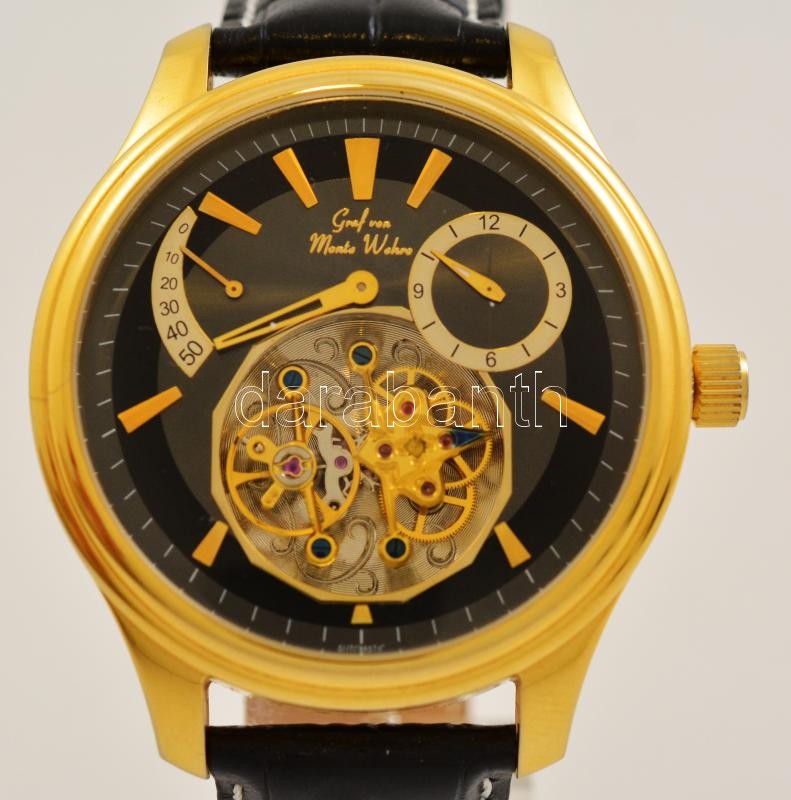 Graf von Monte Wehro automata karóra, látványos, nagyméretű, új bőr sz...